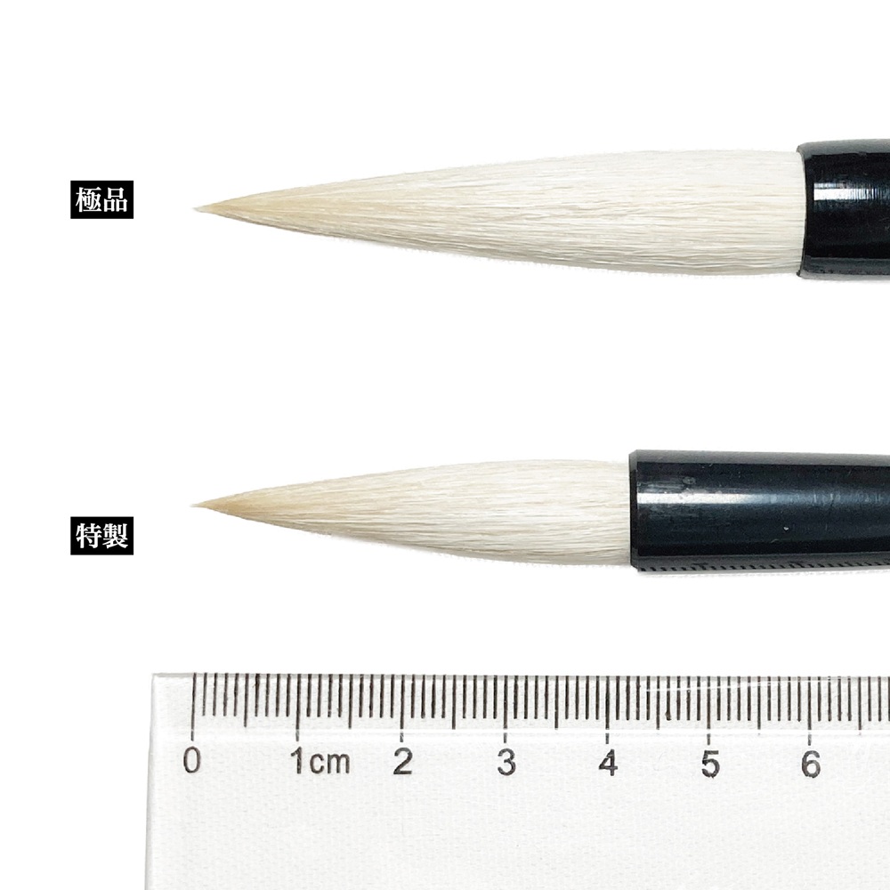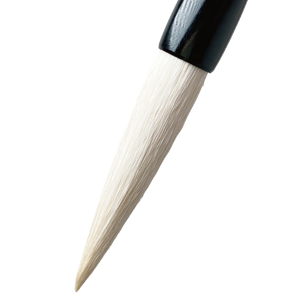 特徴:半切2行用にちょうど良い腰のある羊毛のヒゲ筆。イタチ毛よりも墨含みがよく粘りがあり行書、草書に向いています。