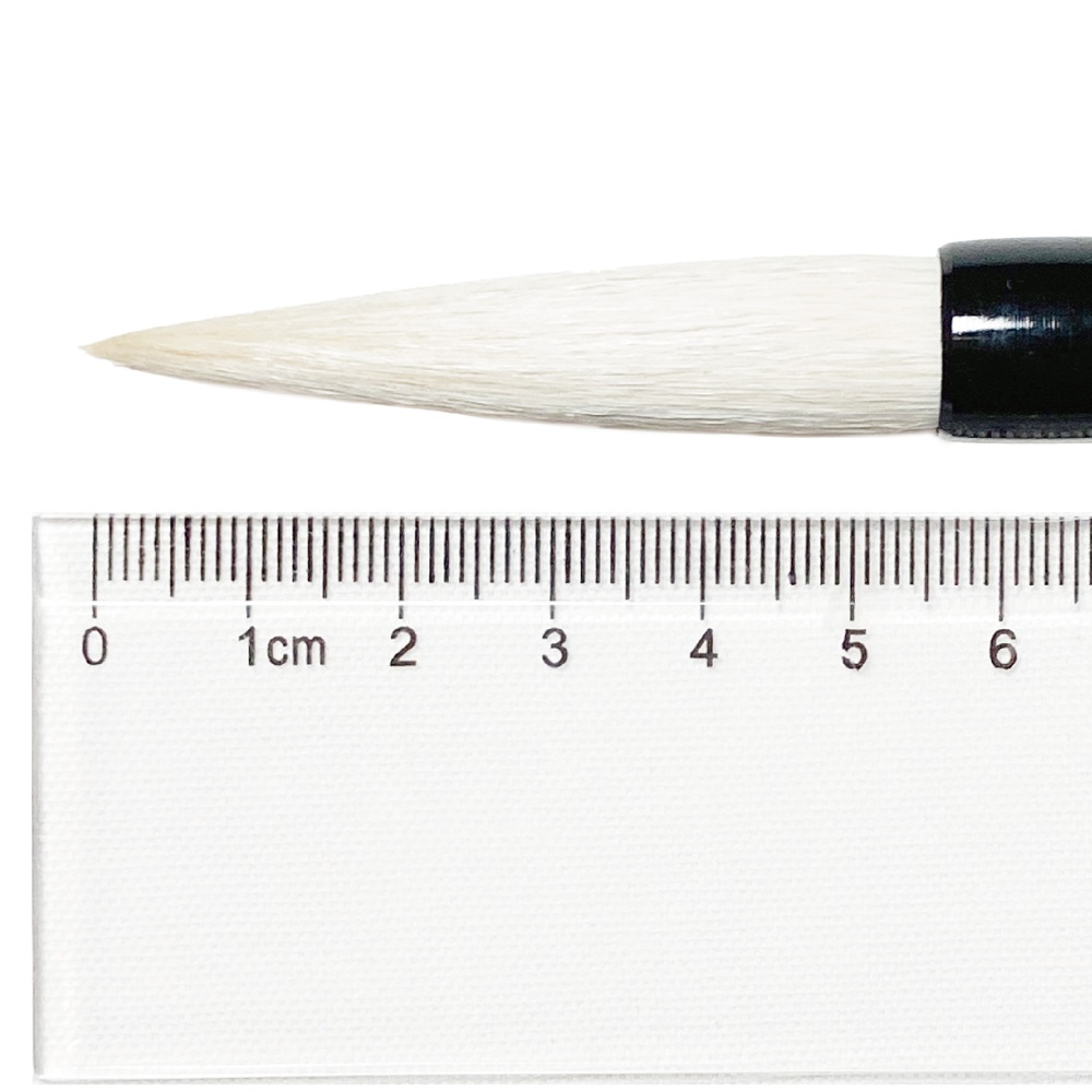 【サイズ】穂の長さ 55mm 直径 12mm 【材質】羊毛ヒゲ 【特徴】半切2行用にちょうど良い腰のある羊毛のヒゲ筆。イタチ毛よりも墨含みがよく粘りがあり行書、草書に向いています。