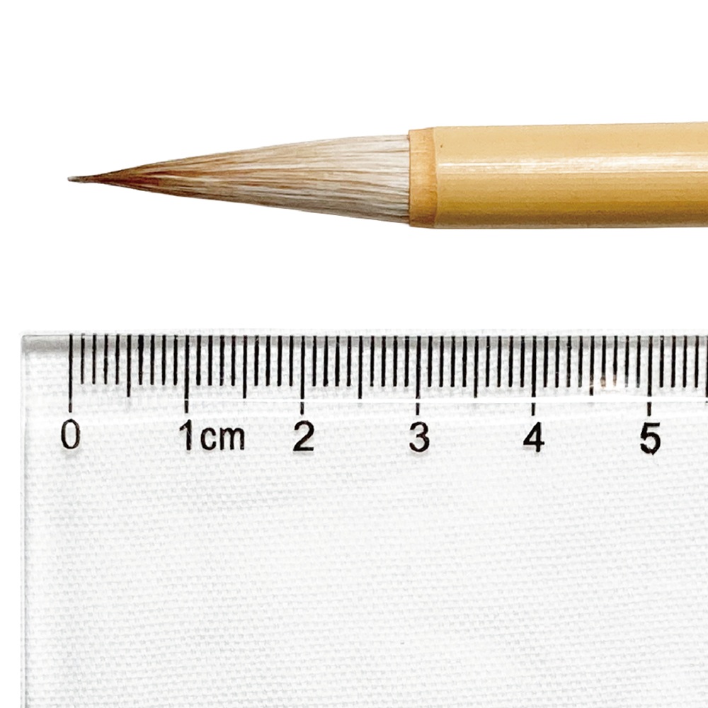 【サイズ】穂の長さ:30mm 直径:6mm 【材質】上質な狸、羊毛、羊尾、鹿毛を使用を使用。 【入数】1本 【特徴】特に花鳥、動物、植物を描くのに最適。穂先に剛毛をつかっているので弾力があり、穂全体の復元力が強い筆です。日本画用水墨画用に基本の筆としてお使いください。