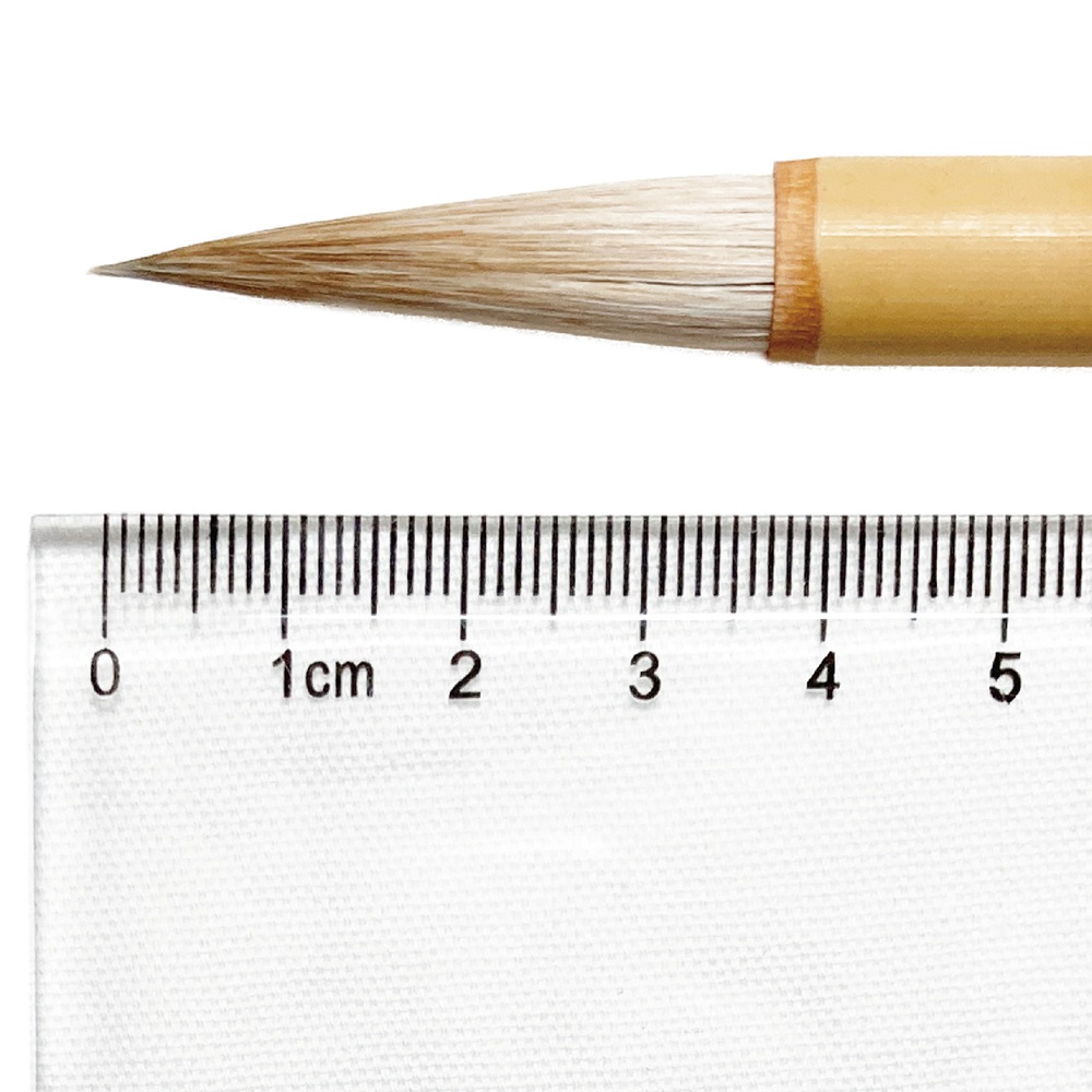 【サイズ】穂の長さ:33mm 直径:7mm 【材質】上質な狸、羊毛、羊尾、鹿毛を使用を使用。 【入数】1本 【特徴】特に花鳥、動物、植物を描くのに最適。穂先に剛毛をつかっているので弾力があり、穂全体の復元力が強い筆です。日本画用水墨画用に基本の筆としてお使いください。